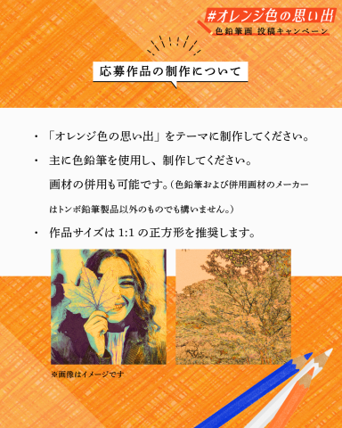「オレンジ色の思い出」のテーマから思い浮かんだ風景やシーン、思い出の品などを「色鉛筆」で自由に描き、インスタグラムに投稿してください。