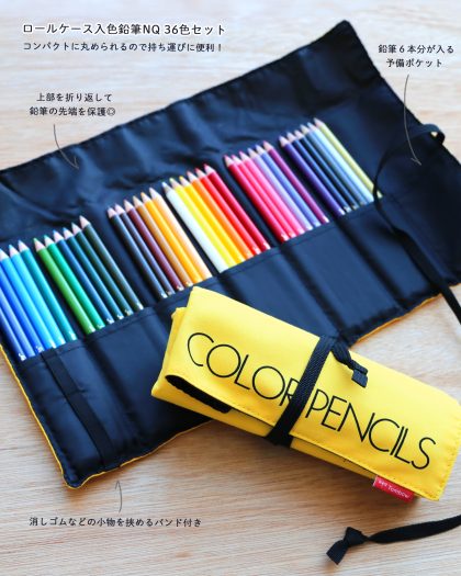 色鉛筆は持ち運びに便利なロールケース入りの36色セットです!