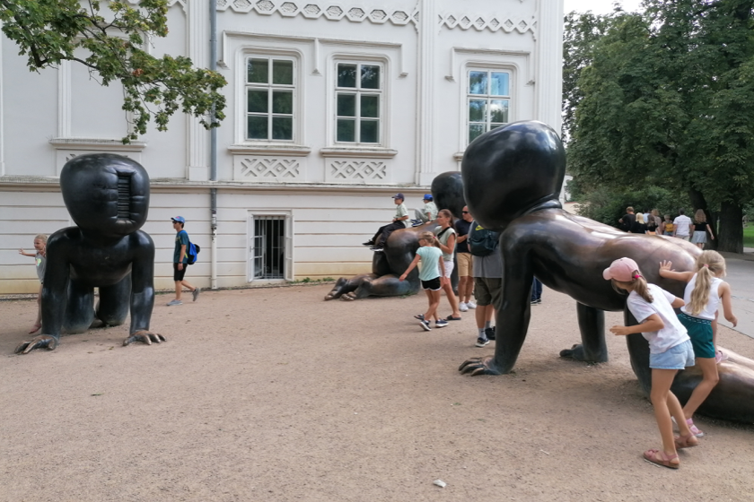 現在では共産主義時代のパブリックアートの多くが撤去されていますが、その体制や政治性静かに反抗した作品や、自由への渇望を意図したモニュメントが点在しています。写真上は1955年、レトナ公園の丘に、高さ15.5mスターリンの巨大モニュメントが設置されたものです。スターリンの死後それが取り壊され、現在は、時を刻む同じ高さのメトロノームのモニュメントがあります。