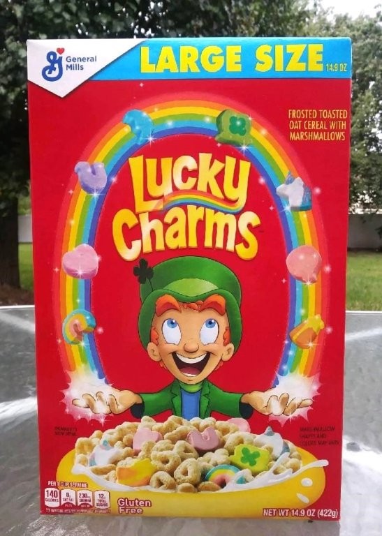 「ラッキー・チャーム」は、1964年生まれの定番シリアルで、ハート、星、クローバー、ブルームーン、ユニコーン、虹、赤い風船、蹄鉄の形をしたカラフルなマシュマロが入っています。