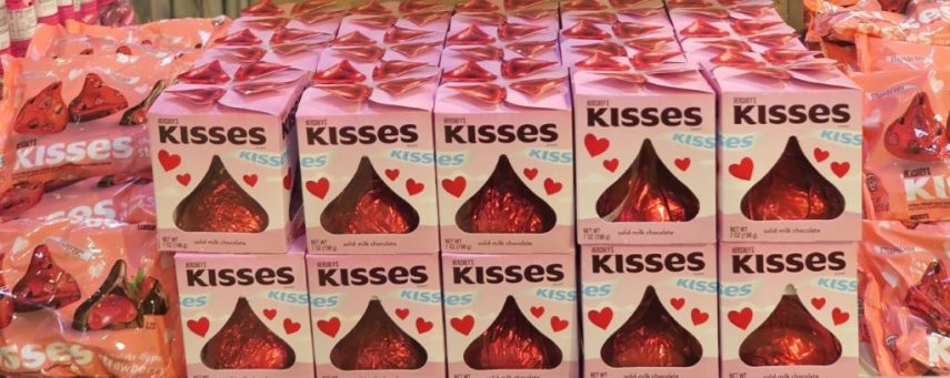 クリスマスには赤と緑、バレンタインにはピンクなど、キスを包むアルミ箔の色が変わります。