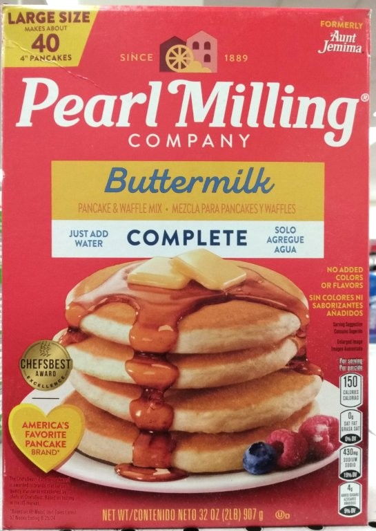 一時期、バンダナをやめ、真珠のイヤリングを付けたモダンな黒人女性の顔をアップしていたものの、全面的に廃止し、現在の箱には、起源となった製粉所の名前が書かれています。ただし、消費者をつなぎ留めておくためなのか、右端に小さく「Formerly Aunt Jemima(元ジェマイマおばさん)」と記してあるのが見えます。)