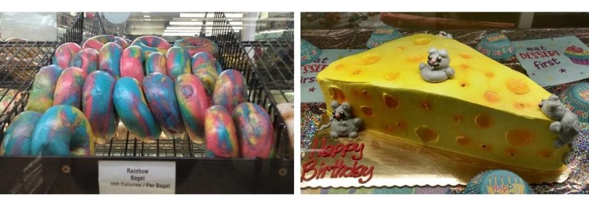 確かに、ピープスは口に入れるのがはばかれるようなけばけばしいネオンカラー。それにしても、スーパーに並ぶ食品のカラフルなことといったら、虹色のベーグルもあり、原色の子供のバースデーケーキあり…。