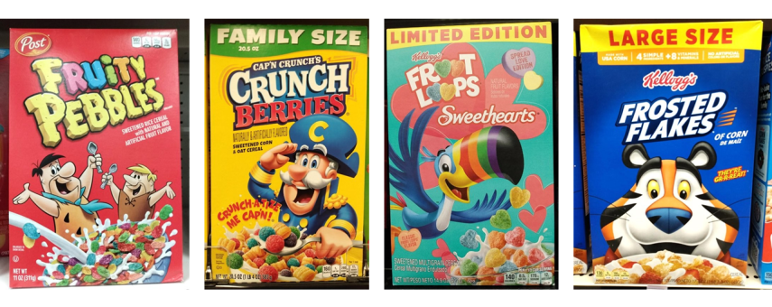 子供用のシリアルには、必ずやマスコットが登場します。シリアルの「ラッキー・チャーム」には、レプラコーンのラッキーが大きく描かれています。