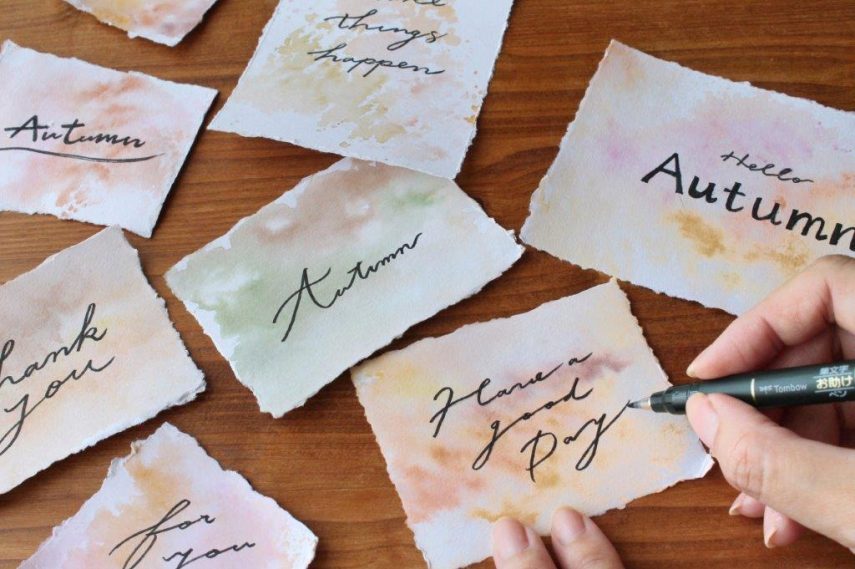 4.色が乾いたら、筆之助でお好きなフレーズを書いて完成です。