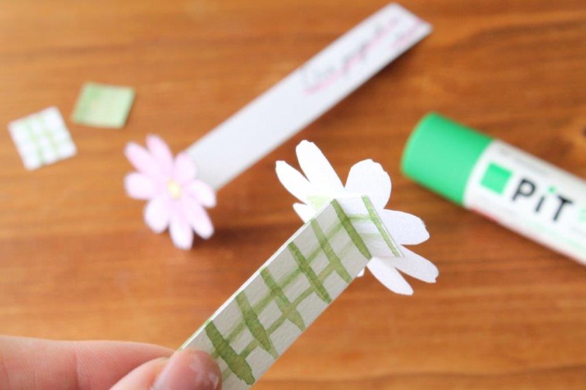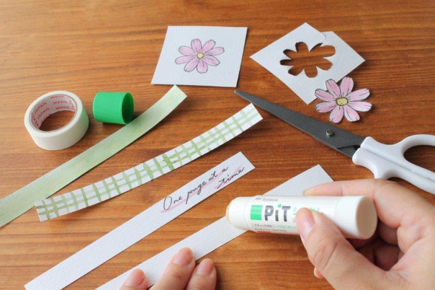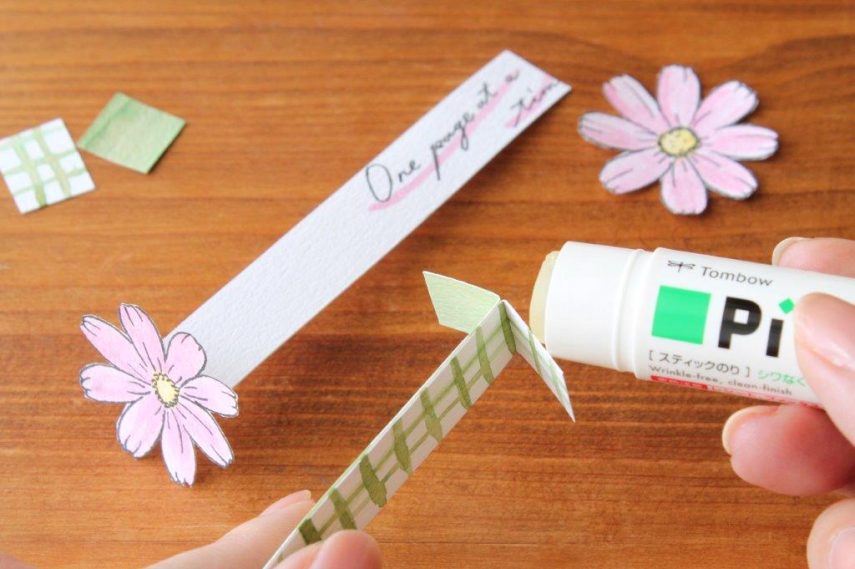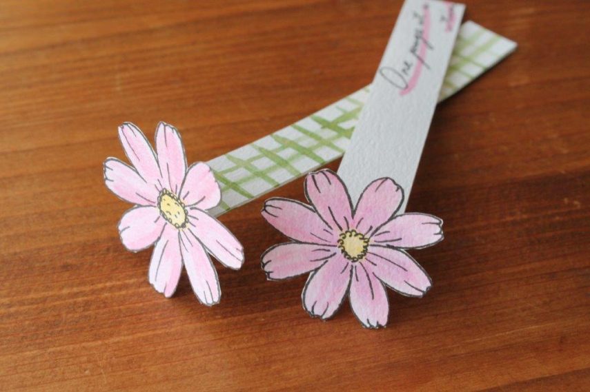 最後にご紹介するのは、コスモスのしおりです。読みかけのページに挟むと、本の間からお花が咲いているようになる、素敵なデザイン。今回はコスモスのモチーフで作りましたが、お好きな草花で作ってみるのもおすすめです。