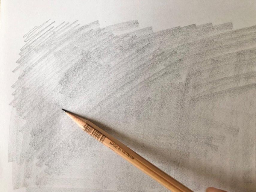 2. プリントした下絵の裏を鉛筆で塗りつぶします。鉛筆をなるべく横に寝かして塗ると塗りやすいです。