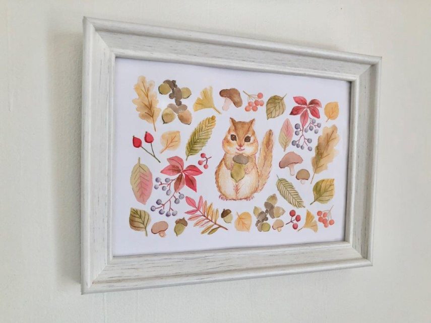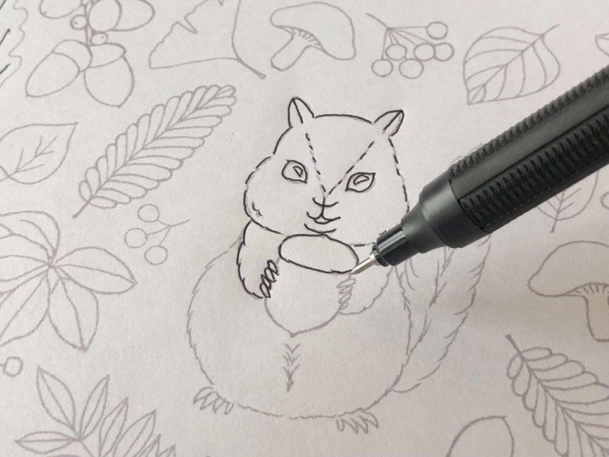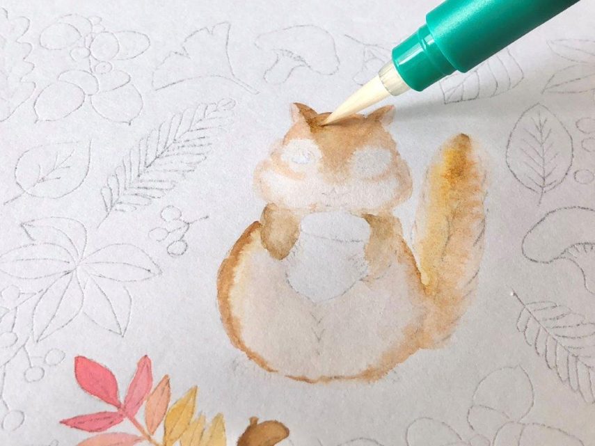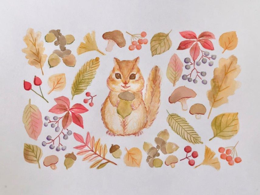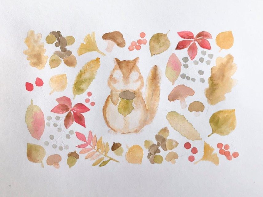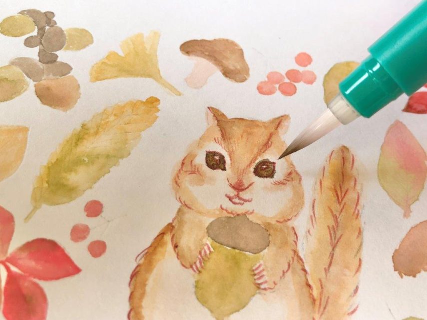 【DLできる下絵付き】色鉛筆とABTで描く季節のイラスト「どんぐりとリス」
