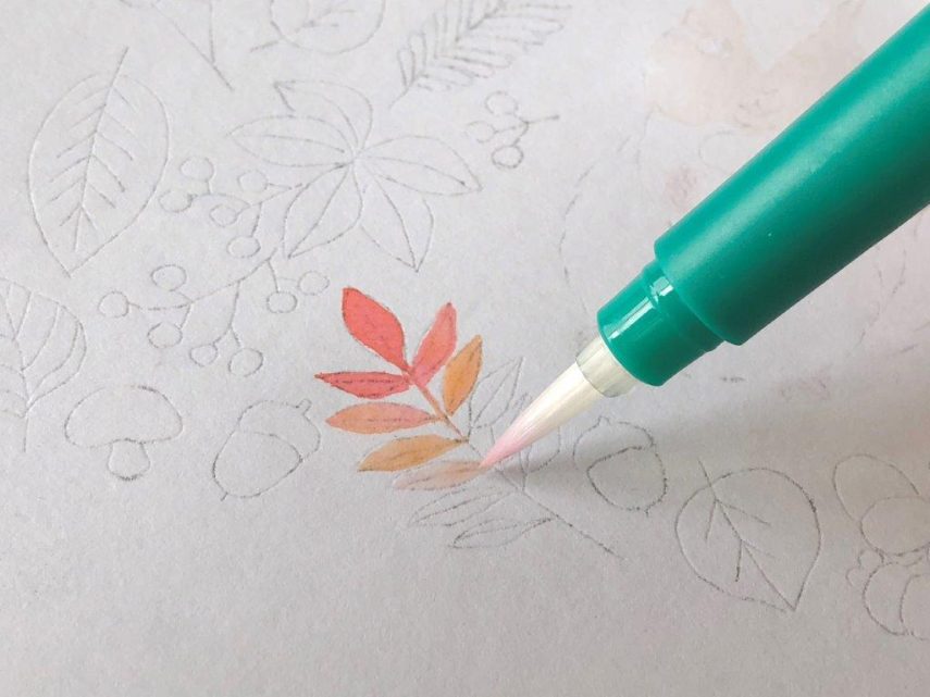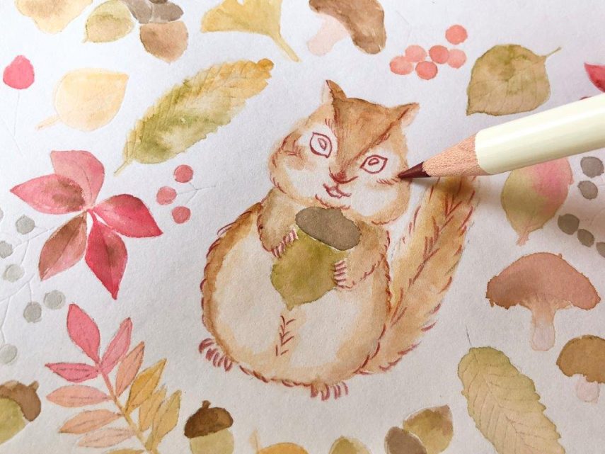 混色と綺麗な滲みを作りやすいABTとカラー豊富な色鉛筆で、秋のイラストを描きましょう。