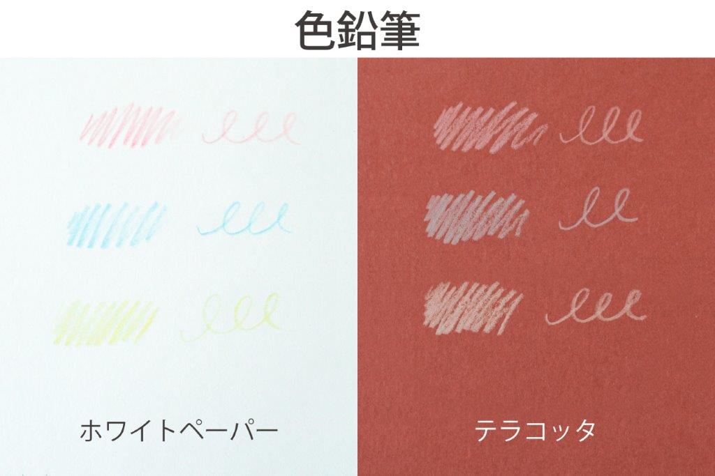 特に明るい色の色鉛筆はテラコッタカラーに合わせると、やわらかなコントラストが生まれ、この紙色ならではの表現ができます。