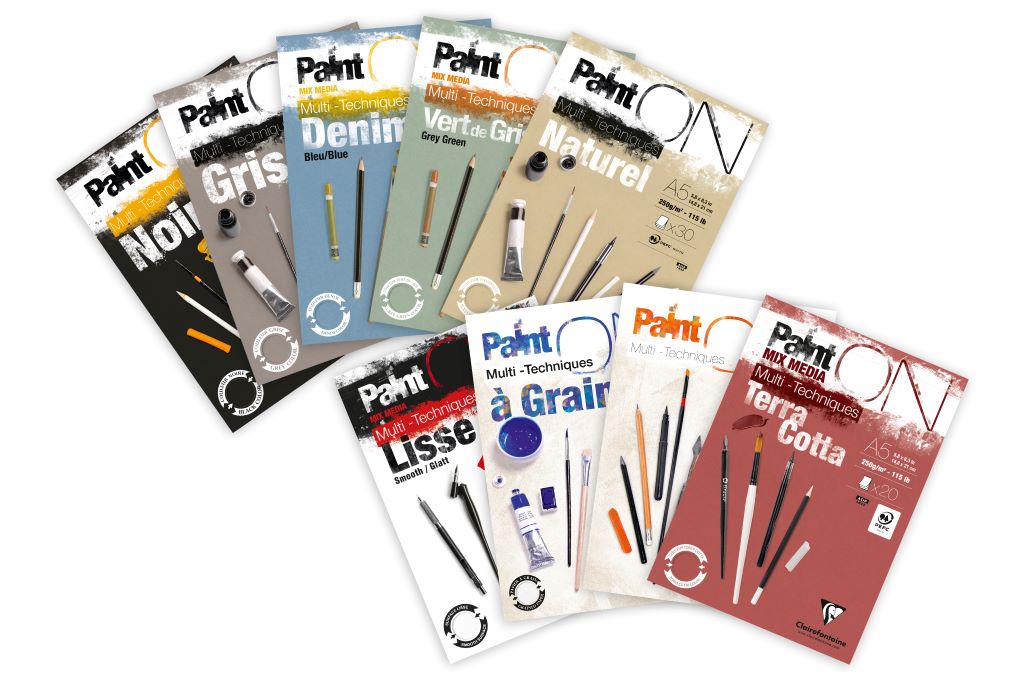 ペイントオンの紙は「ミックスメディアペーパー」と呼ばれ、さまざまな画材や表現方法に対応できるのが特長です。