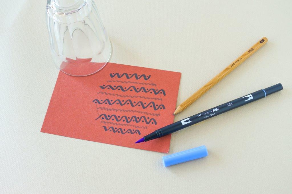 切り抜く前に柄を書きこむと、端までまんべんなく模様を描くことができます。