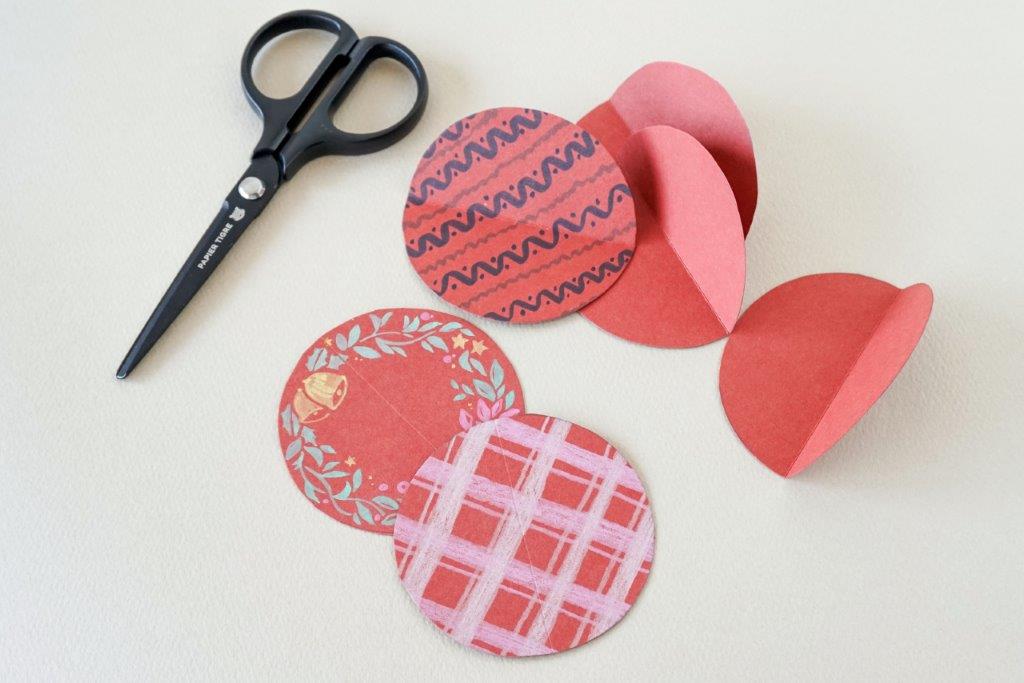 半分に折りにくい場合は、あらかじめカッターの背などで折り線をつけておくと、きれいに折りやすくなります。