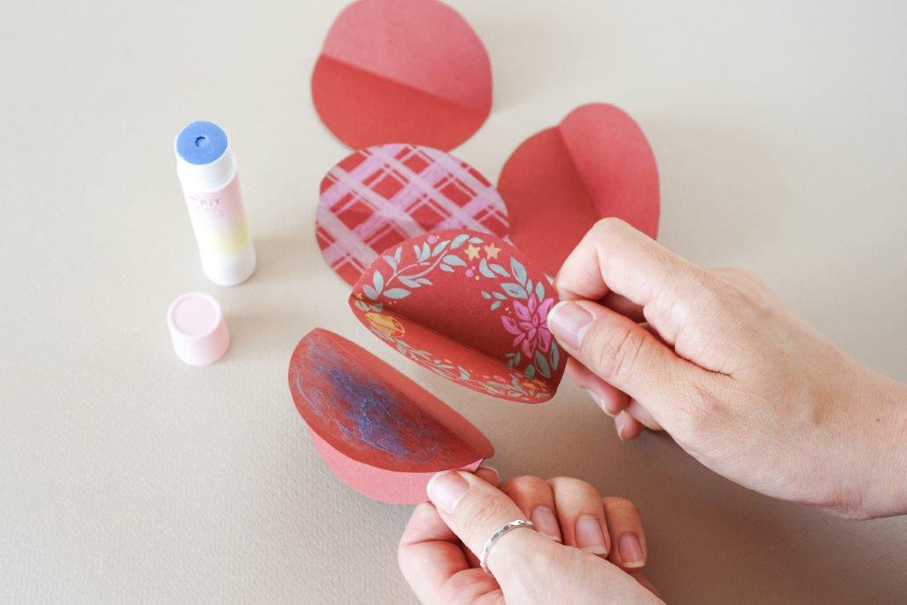 折った裏側の半分を、別のパーツの半分と貼り合わせます。