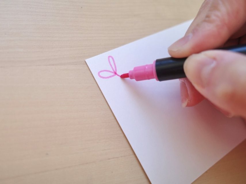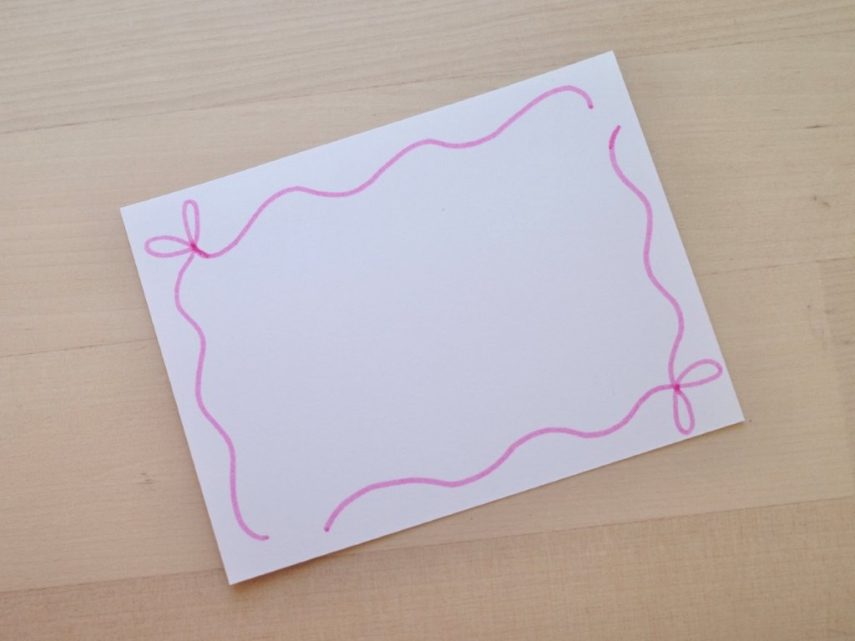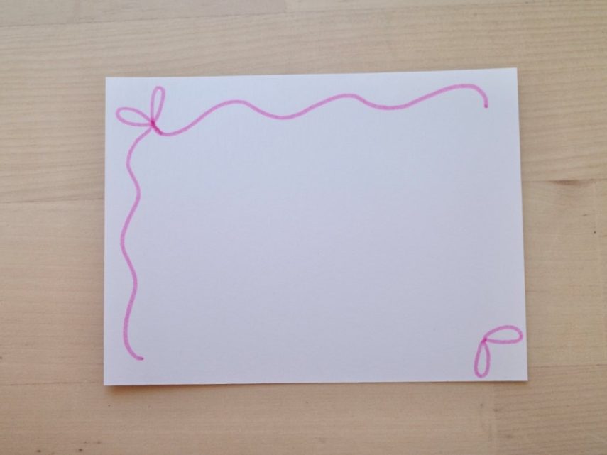 まず最初にカードの左上と右下にリボンの輪っかを描きます。