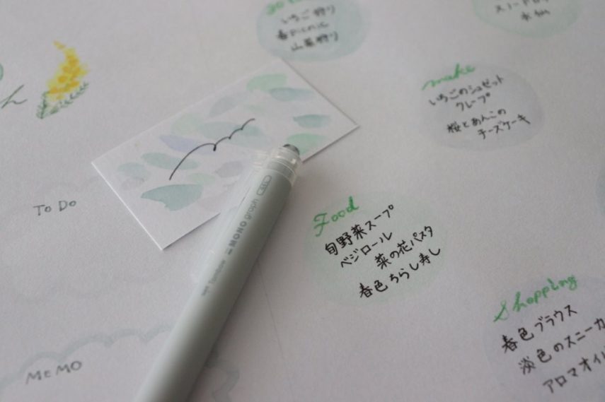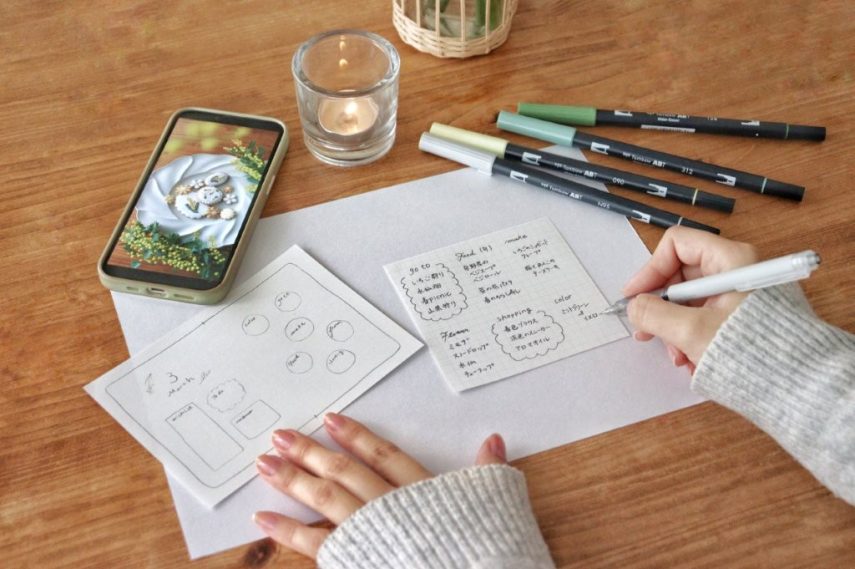 はじめに3月に叶えたいことをメモに書き出し、ジャンルごとにまとめて、デザインを決めます。