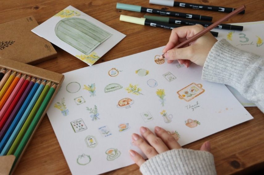 「 絵が苦手な方でも、“あえて未完成感のある柔らかい雰囲気を残す”“1つのモチーフに使う色は3色まで”を意識しながら描くと、ナチュラルなイラストを描くことができます」