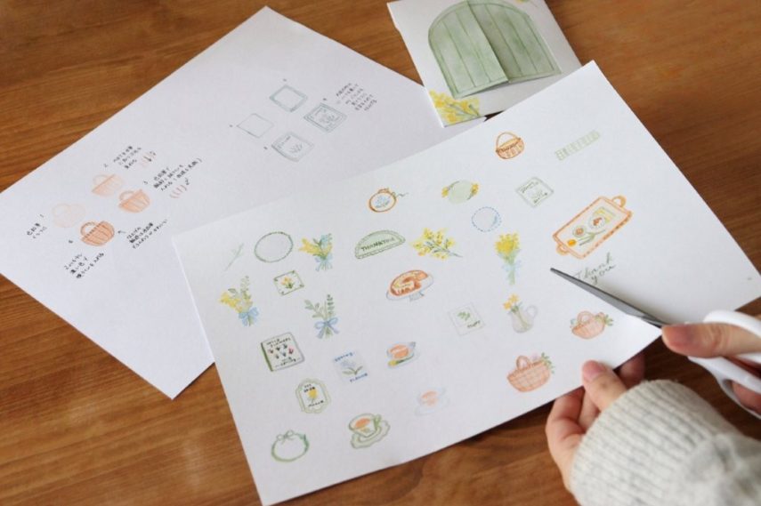 6.シールにしたいイラストを切り取ります。2mmほど余白を残し、丸く切り取るとシールらしさが出ますよ。
