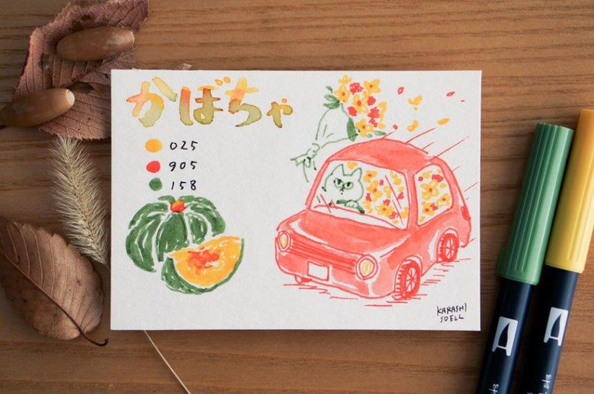 本物のかぼちゃではアクセントになっているオレンジをあえてメインに使うことで、イラストの印象は変えつつ配色による雰囲気は残すことができます。