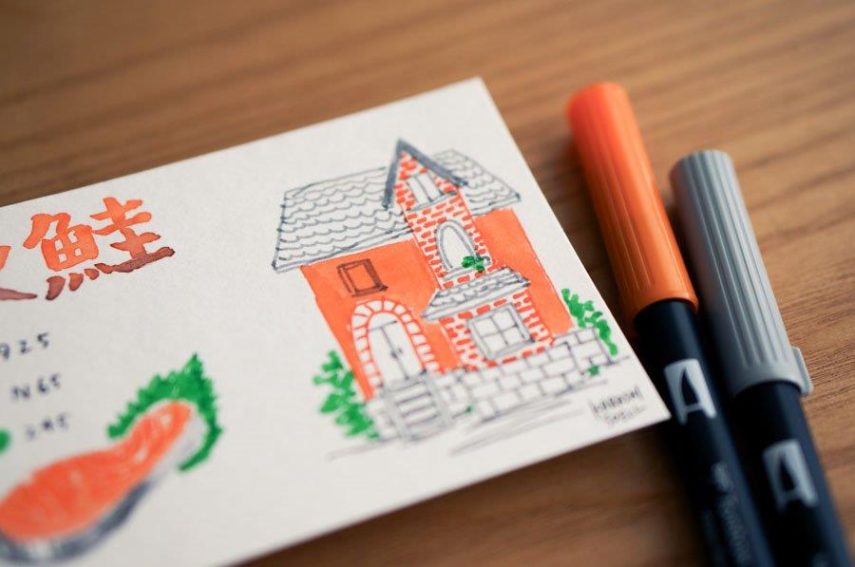 この建物イラストだけを見たら、秋鮭の配色とは気づかないかもしれません。