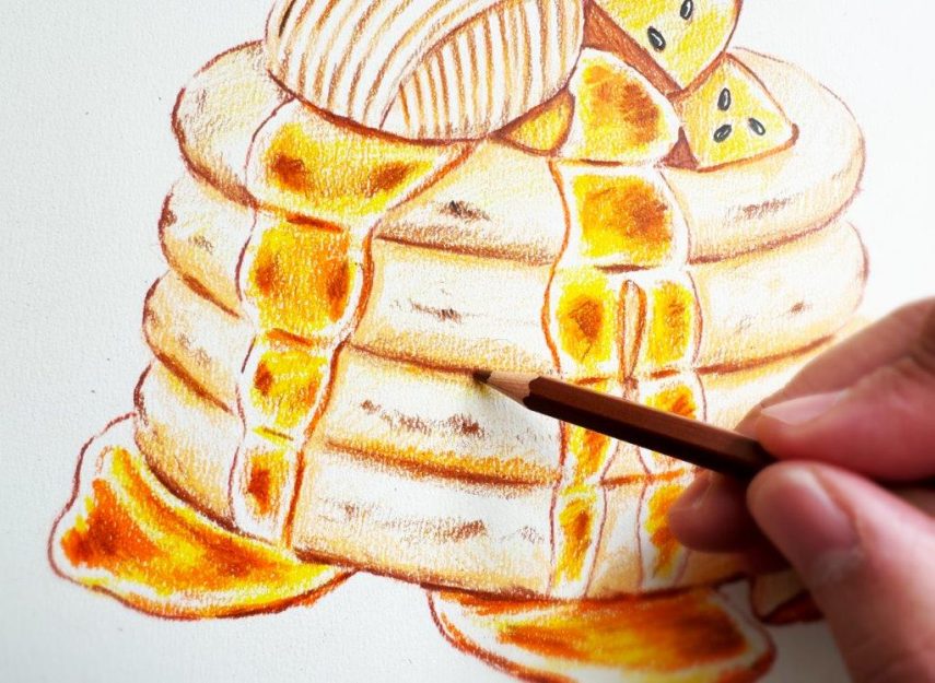 今回は、トンボの色鉛筆『木物語』で美味しそうなサツマイモのパンケーキの描き方をご紹介します。