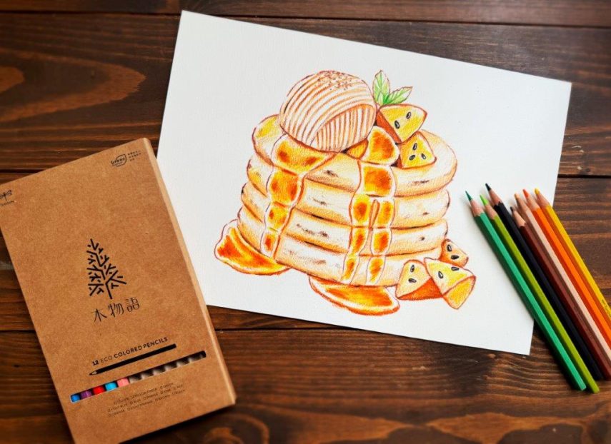 今回は、トンボの色鉛筆『木物語』で美味しそうなサツマイモのパンケーキの描き方をご紹介します。