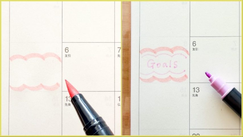 手帳の左右に余白があれば、飾り枠の中に目標などの見出しを書くのもおすすめです。