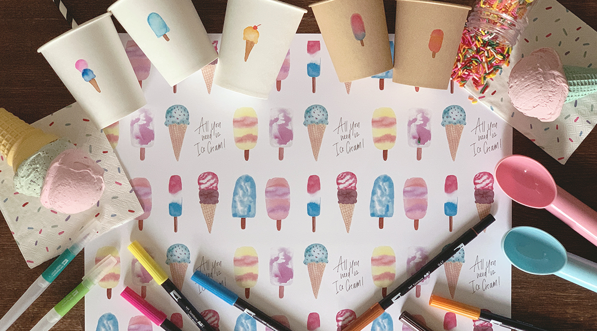 Lifestyle 2020.7.20 真夏のサマーパーティーは水彩アイスで涼もう<無料テンプレート> #ABT#水筆#アイスクリーム#水彩画#テンプレート#プレイスマット#ARCH DAYS#satohom
