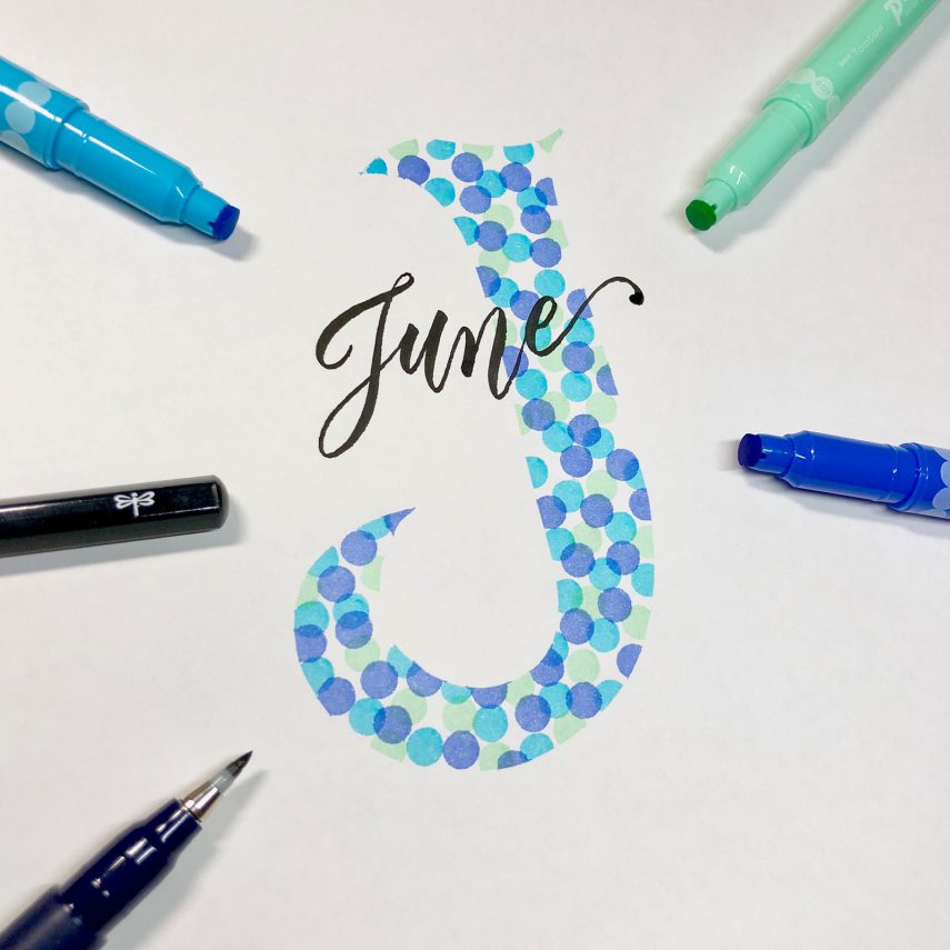 型紙とプレイカラードットでレタリングをしてみました。 ドットをキレイに押すコツは一度面全体をつけ、傾けながらペンをはなします。